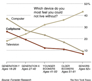 Il appert que chaque génération tient aux technologies avec lesquelles ils ont grandi (voir graphique ci-contre).