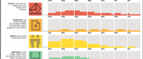 Pour vos stats. Forrester donne le taux de participation sur le web 2.0 par segments (Or, Boom+, Boom-, x, y, g et n). Le tableau regroupe les types d’usagers en « créateurs de contenu », en « commentateurs », en « agrégateurs », en « utilisateurs » et en « inactifs ». Et c’est magnifiquement illustré par Business Week. (Données pour les États-Unis seulement). Via […]