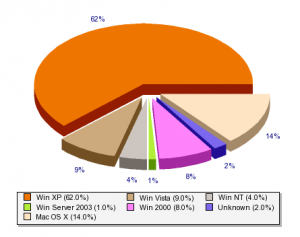 Mon lectorat, majoritairement windows –mais avec une quantité statistiquement élevée de Mac — semble être encore principalement sur XP. 9% utilisent Vista. Un peu plus que les gens sur Windows 2000.