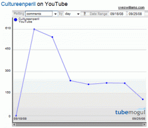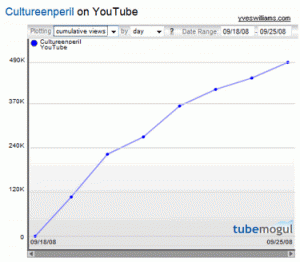 Trois quarts de million, tel est le nombre de visionnements du vidéo viral Culture en péril dont je suis à la trace depuis 1 semaine. Mais pourquoi les commentaires n’ont pas suivi la même courbe? Étrange…