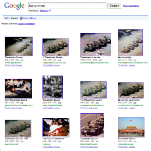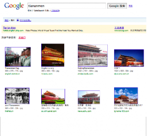 Voici les résultats aujourd’hui sur images.google.cn (Chine) pour le terme «Tiananmen»