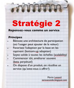 Pensez abonnement. Quels sont le ou les services que votre site peut rendre? Est-il unique? Développez un API pour qu’ils puissent être utilisés à l’extérieur de votre site. Demandez-vous comment vous pouvez simplifier une tâche à un usager. Ce n’est pas pcq nous dans un libre-service, qu’ils doivent se plier en quatre.