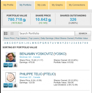 Ce qui est intéressant, en ce moment, c’est que l’on peut voir que le principe peut réellement montrer qui a de l’influence dans la sphère technocratie. Sur le web, on peut monter des milliers de followers dans Tweeter ou y suivre des milliers de personnes: ce n’est pas le cas sur Empire Avenue où notre porte-monnaie n’est pas illimité. Il faut dépenser ses sous avec soin.
