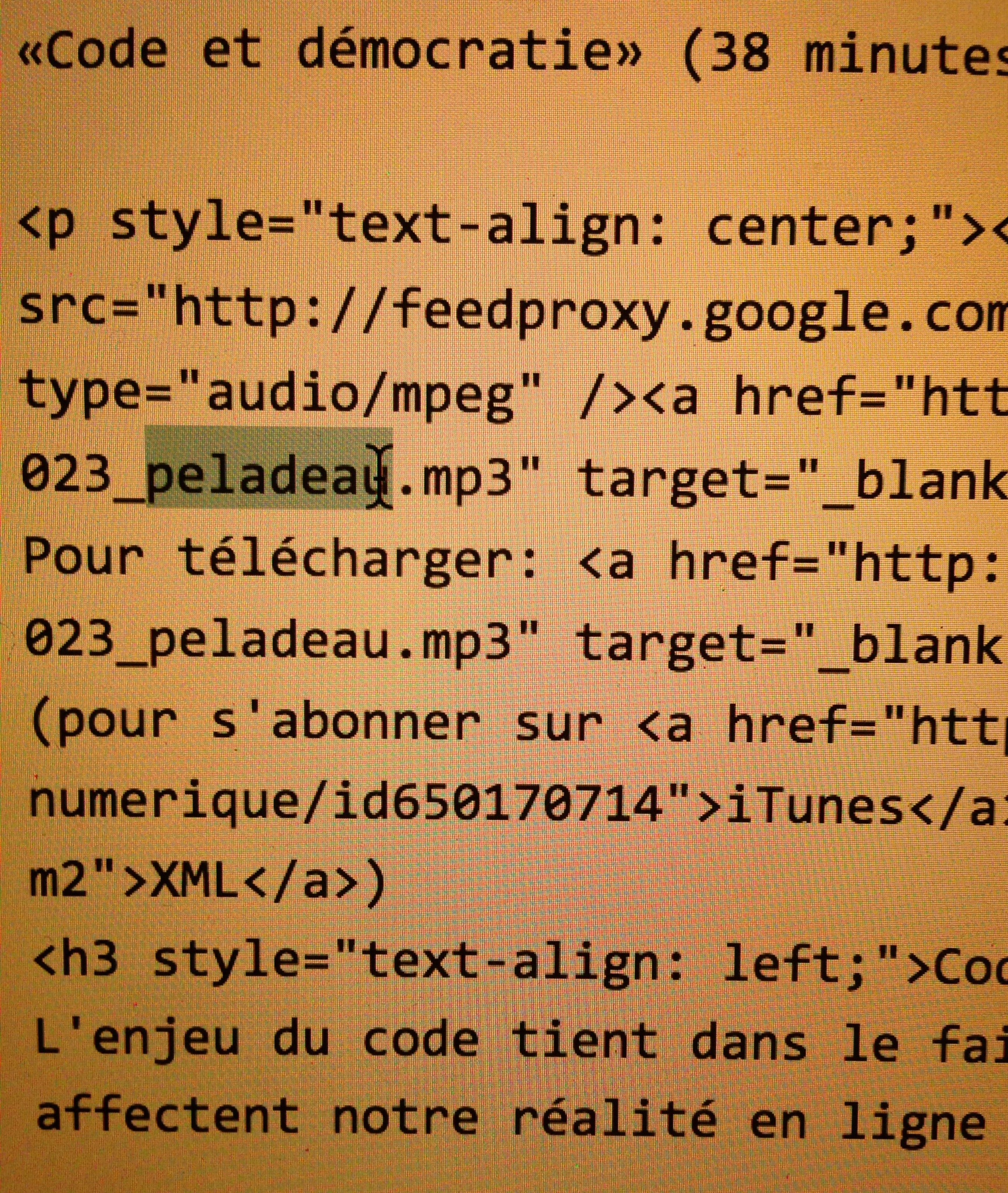 Pierrot Péladeau s’intéresse depuis longtemps aux impacts du numérique sur nos sociétés. Il a écrit un article (Démocratiser les code et désign informatiques faisant loi et surveillance) en juin 2014 qui résume bien le débat sur la question, question qu’il étudie depuis plusieurs décennies (lire : L’informatique ordinatrice du droit et du procès d’information relatif aux personnes -1989)